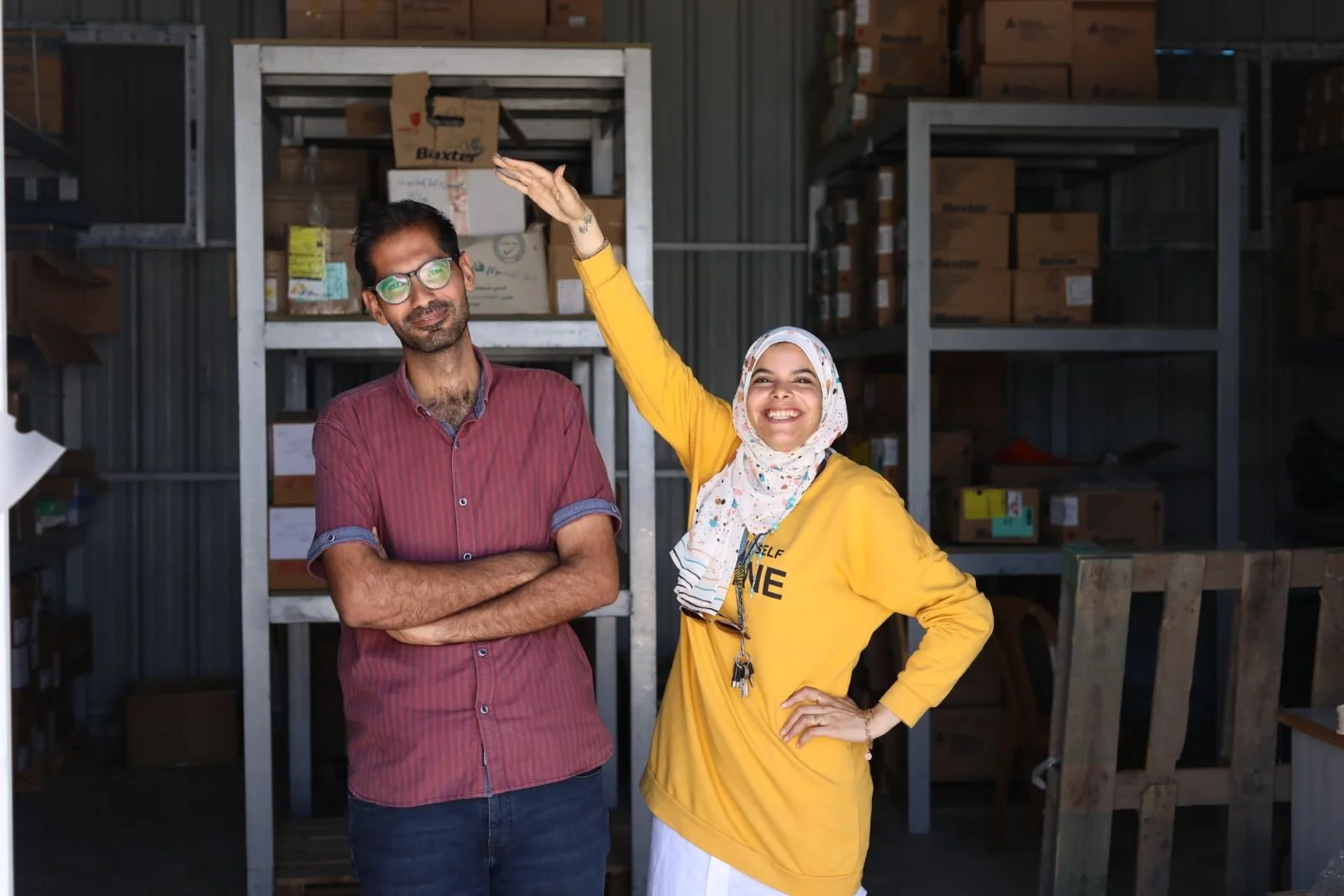 "My name is Weam. It’s a beautiful name for me, because my mother gave it to me. She died of cancer when I was eight years old-- so I love my name, because my mom loved it. It’s also perfect for me because it means ‘peace, love, and harmony.’ And everyone who meets me says that I’m positive energy shining everywhere. I’m a team leader for twenty-three pharmacists. ‘The pharma army,’ we call it. Ask anyone: we are the happiest team in the hospital. After we start our morning meeting, I’ll put on a bit of music for everyone. If they want to dance, they can dance. If they want to sing, they can sing. We are working 24 hours, seven days a week without stopping. They are under so much stress, all the time. There are always mass casualty incidents. And everyone in Gaza is living their own nightmare: with the bombings, the displacements, the hunger. So I’m just trying to make it easier for them. When I help others, it feels like I’m doing something right, that I’m still useful in this life. In Islam, if you speak a good word to someone else, it is also a good thing for you. So if someone smiles, and says: ‘Good job, you did it, you survived another day.’ This is a big deal for us. So I try to keep a smile from ear to ear. But on the inside, no. I am not happy at all. I haven’t slept for more than three hours since the war began. We are all screwed up in this world. Even if you are still alive in this moment, maybe in five minutes you will die. The smallest spark of light can be destroyed in the blink of an eye. How can anyone be happy when they are surrounded by so much death? But there is something that my mother said to me, right before she died. It’s the only memory that I have of her. She told me: ‘Weam, please keep that smile on your face. Because everyone loves your smile.’ So that’s what I’m trying to do. I’m trying. You will find that even when I’m crying, I am smiling."